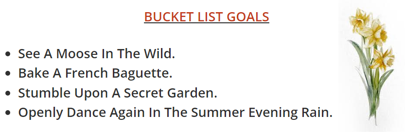 Anyway, spoiler alert, my bucket list humour always landed me on the wrong side of what was supposed to be a wholesome chat about conquering life’s “gaps.”